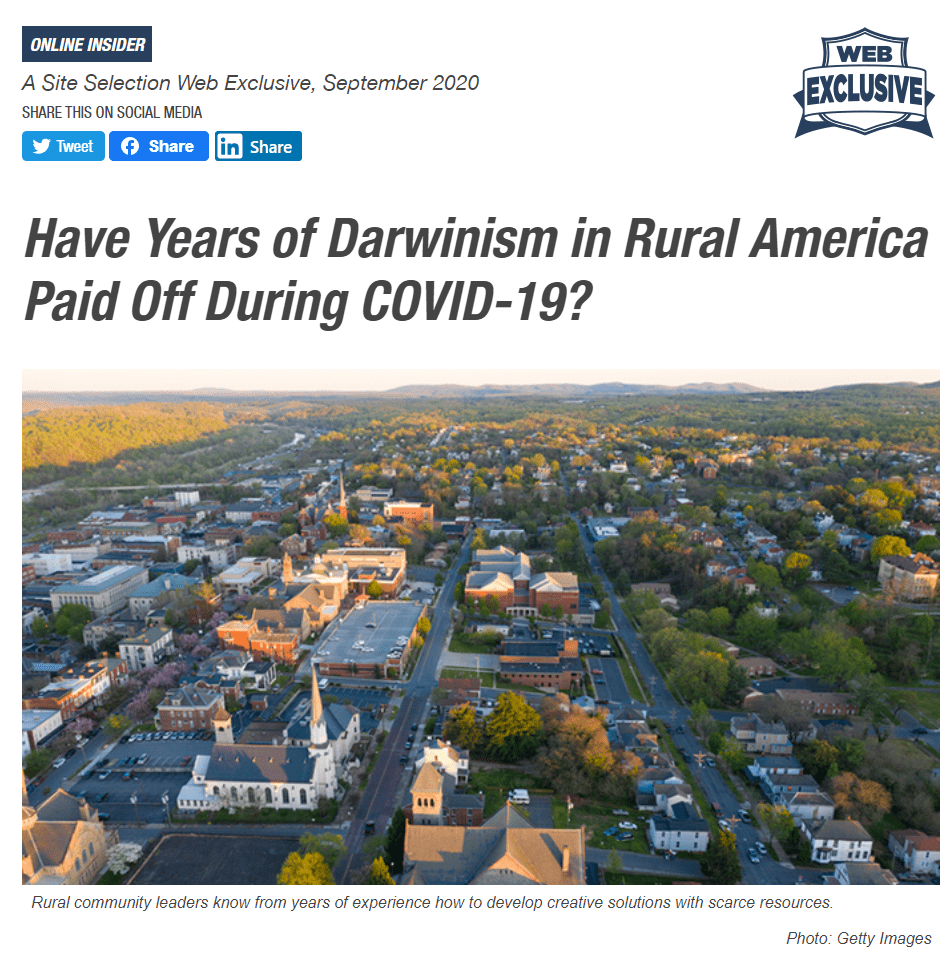 As cities reel from a public health crisis and civic unrest, rural and small town community leaders are the unspoken heroes during the COVID-19 pandemic. They have historically learned how to thrive through fostering creative connections between limited resources and community needs. Years of practice navigating threats and finding solutions keeps rural America surviving, even amidst a pandemic.