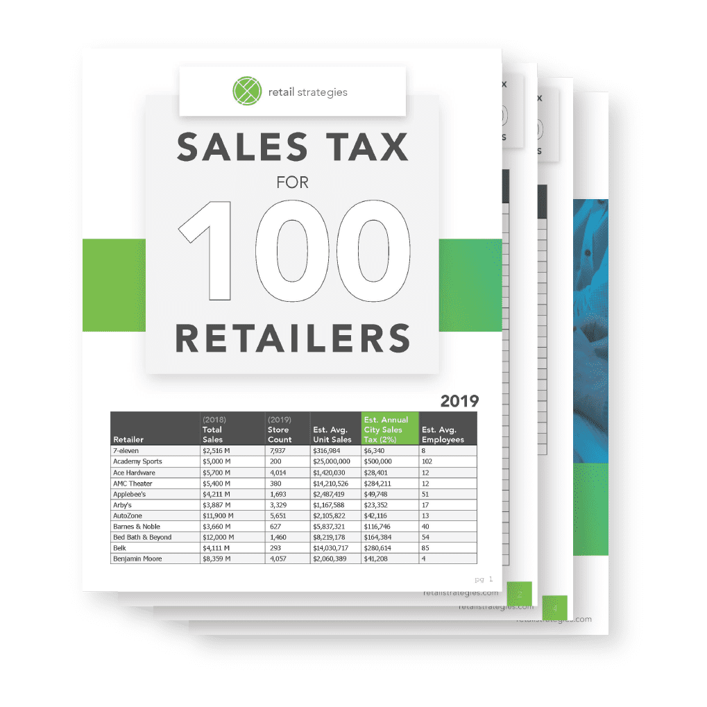This report provides total sales, store counts, and the average estimated sales tax generated for a community by a given retailer. This list helps city leaders truly understand what a retail win brings to their town: new jobs and revenue to fund the city.
