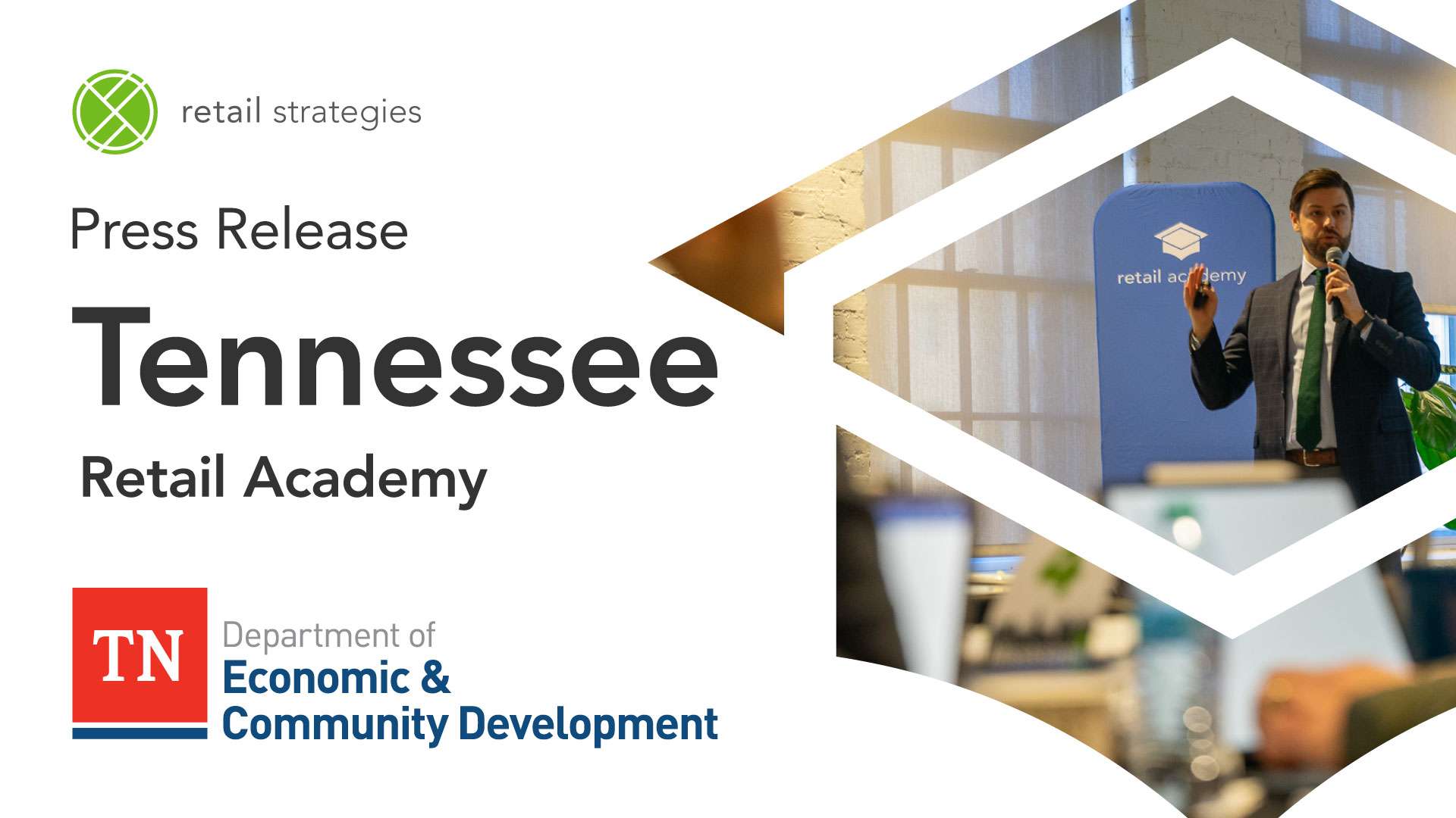 BIRMINGHAM, AL (February 20, 2025) – The Tennessee Department of Economic and Community Development (TNECD) is partnering with Retail Strategies to host a two-day Retail Academy training event for 20 Tennessee communities on February 26-27 in Franklin. The intensive educational program will provide local leaders with essential tools and knowledge for retail recruitment and development.